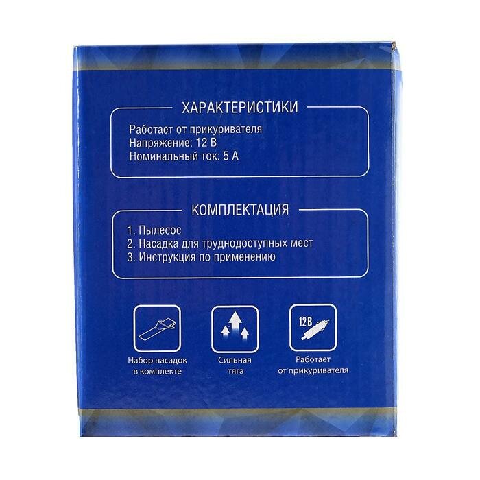Пылесос автомобильный CARTAGE, беспроводной, 5 насадок, 120 Вт, 12 В, черный 5377452 .