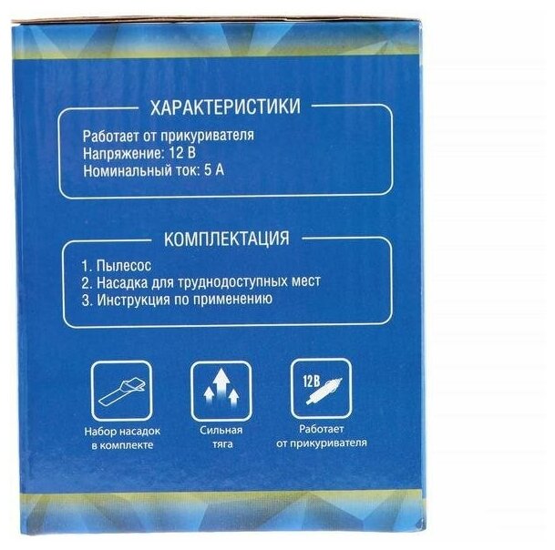 Пылесос автомобильный CARTAGE, беспроводной, 5 насадок, 120 Вт, 12 В, черный 5377452 .