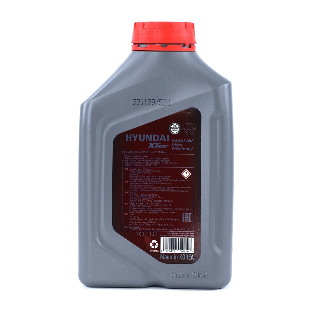 HYUNDAI XTeer Hyundai Xteer Gasoline Ultra Efficiency 0W20 (1L)_Масло Моторн.! Синт Api Sp, Ilsac Gf-5, Gf-6