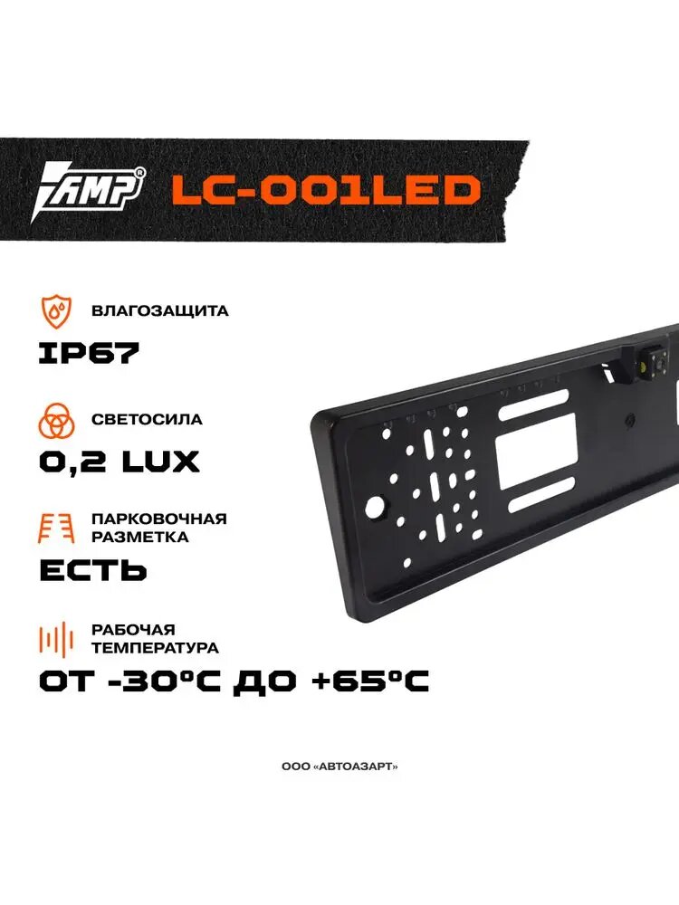 Купить Камера заднего вида AMP LC-001LED в рамке номерного знака c подсветкой (Черная)