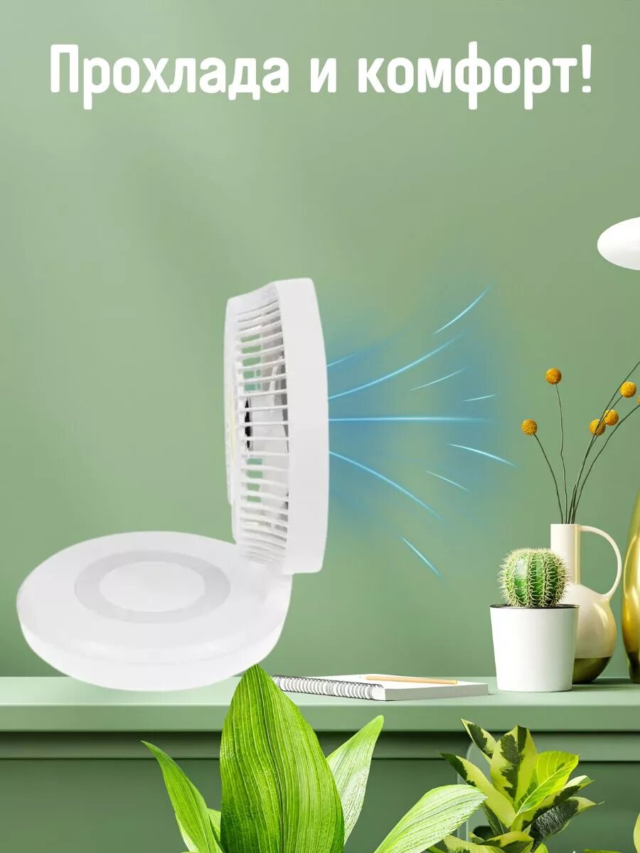 | Плюсы: | Удобный, компактный, можно поставить на стол или даже повесить на стену, заряжается от usb, можно брать с собой в дорогу или на природу, мощность обдува оптимальная. |