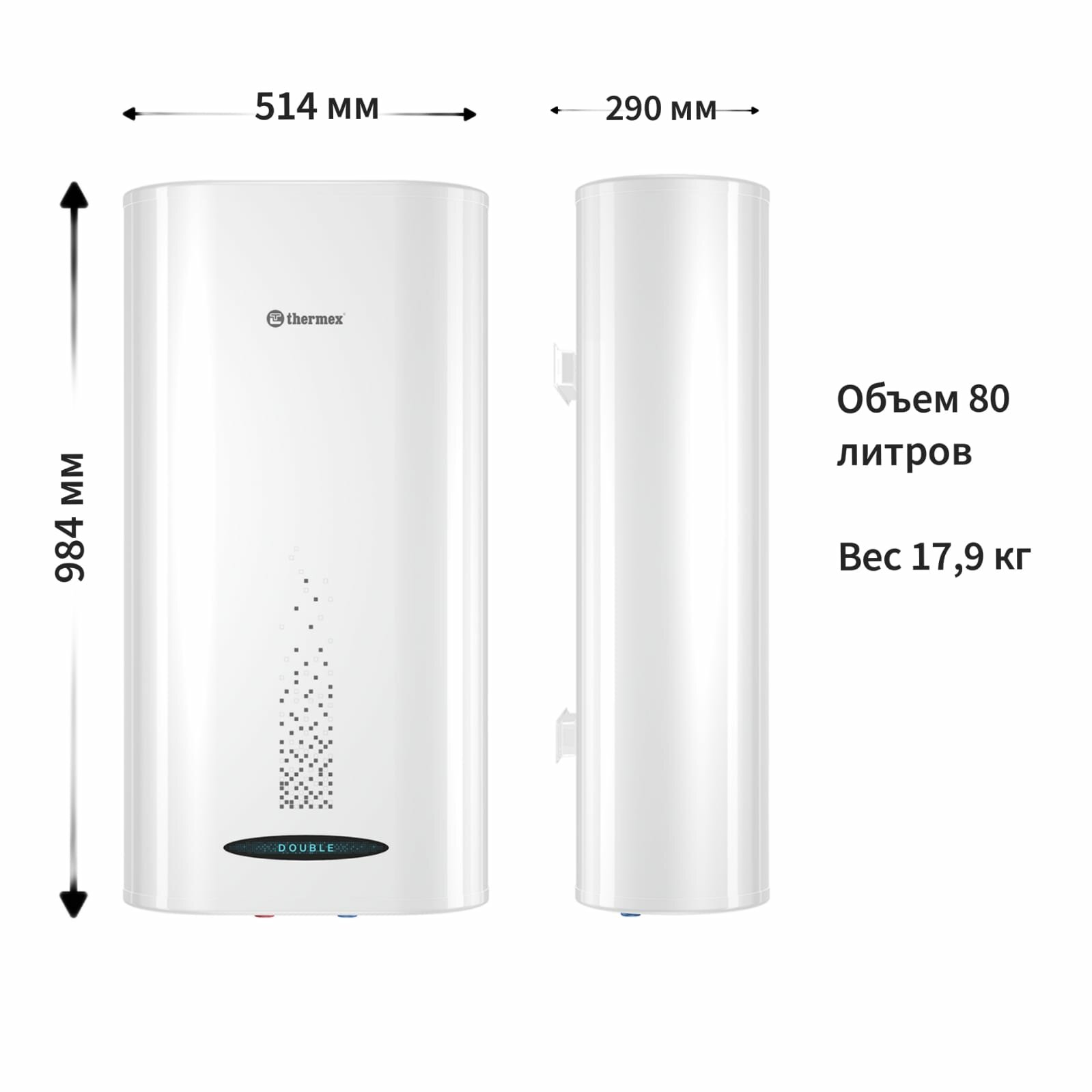 Водонагреватель электрический накопительный Thermex DOUBLE - 80 л. (два внутренних бака)