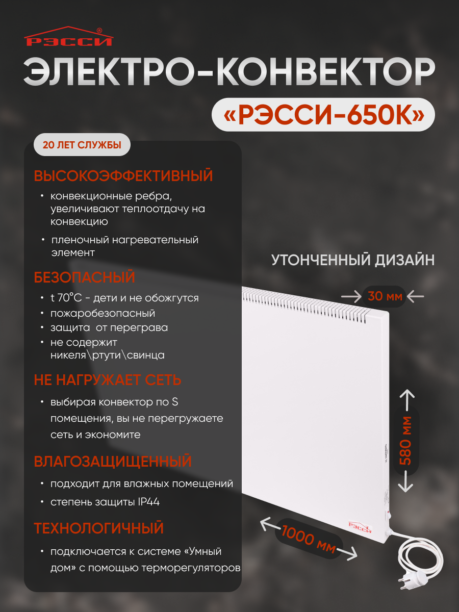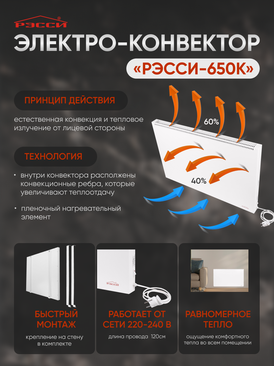 Конвектор электрический рэсси 650K (12 м²) интересное: