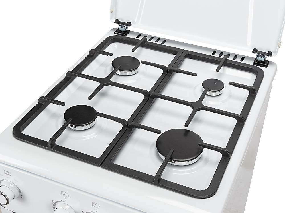 Газовая плита Hyundai RGG225, газовая духовка, металлическая крышка, чугун, белый