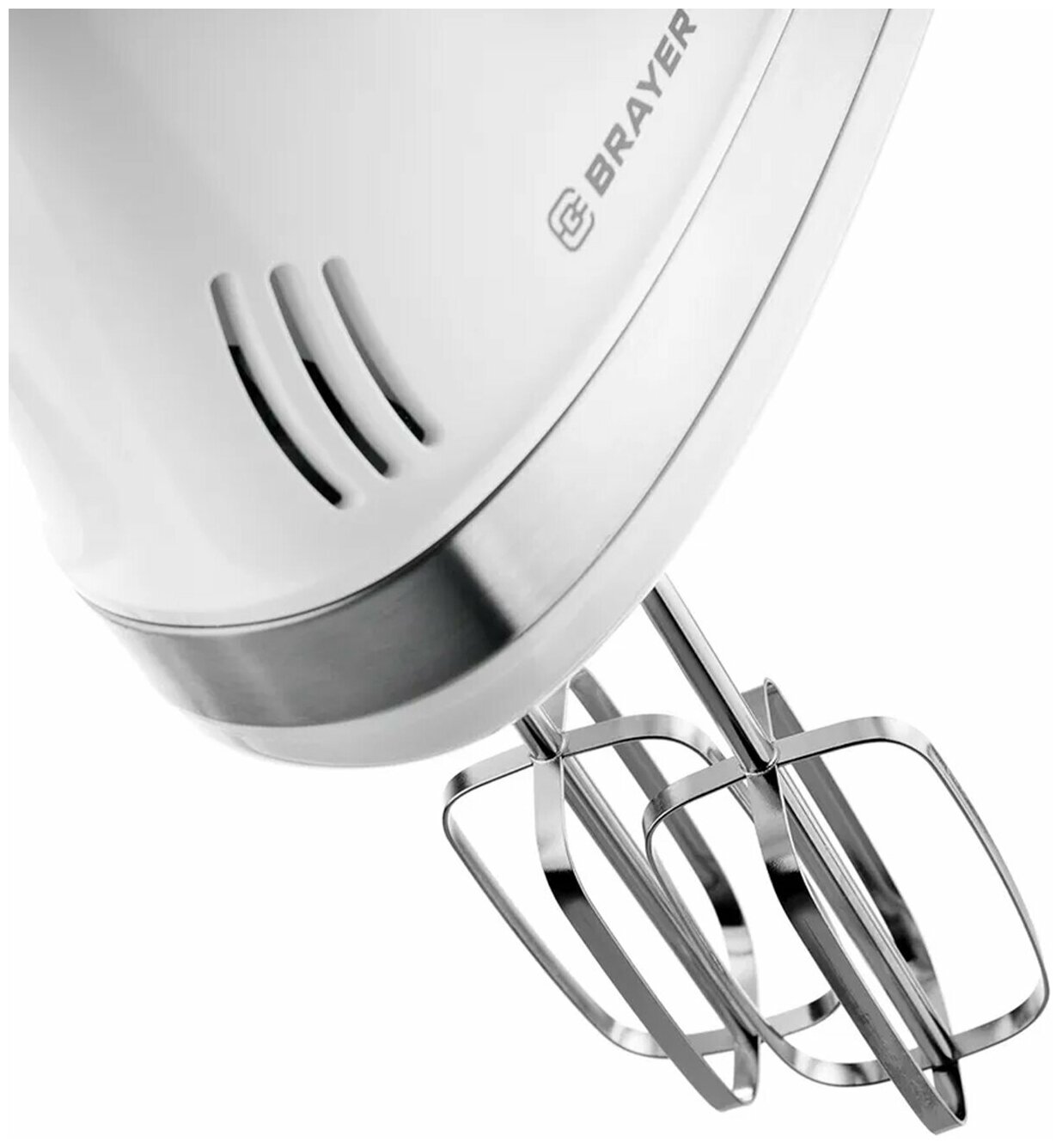 Миксер BRAYER BR1301, 250 Вт, 5 скоростей, 2 венчика, 2 крюка для теста, белый, 456088