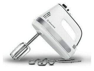 Миксер BRAYER BR1301, 250 Вт, 5 скоростей, 2 венчика, 2 крюка для теста, белый