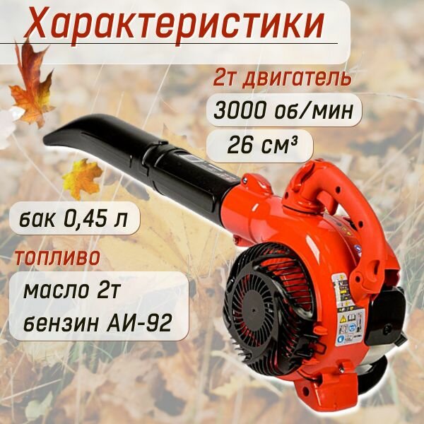 Бензиновая воздуходувка BRAIT BGB260C (750 Вт, 3000 об/мин, об/ травосборника 50 л, произв. 720 м/ч ) / для уборки листьев / пылесос промышленный
