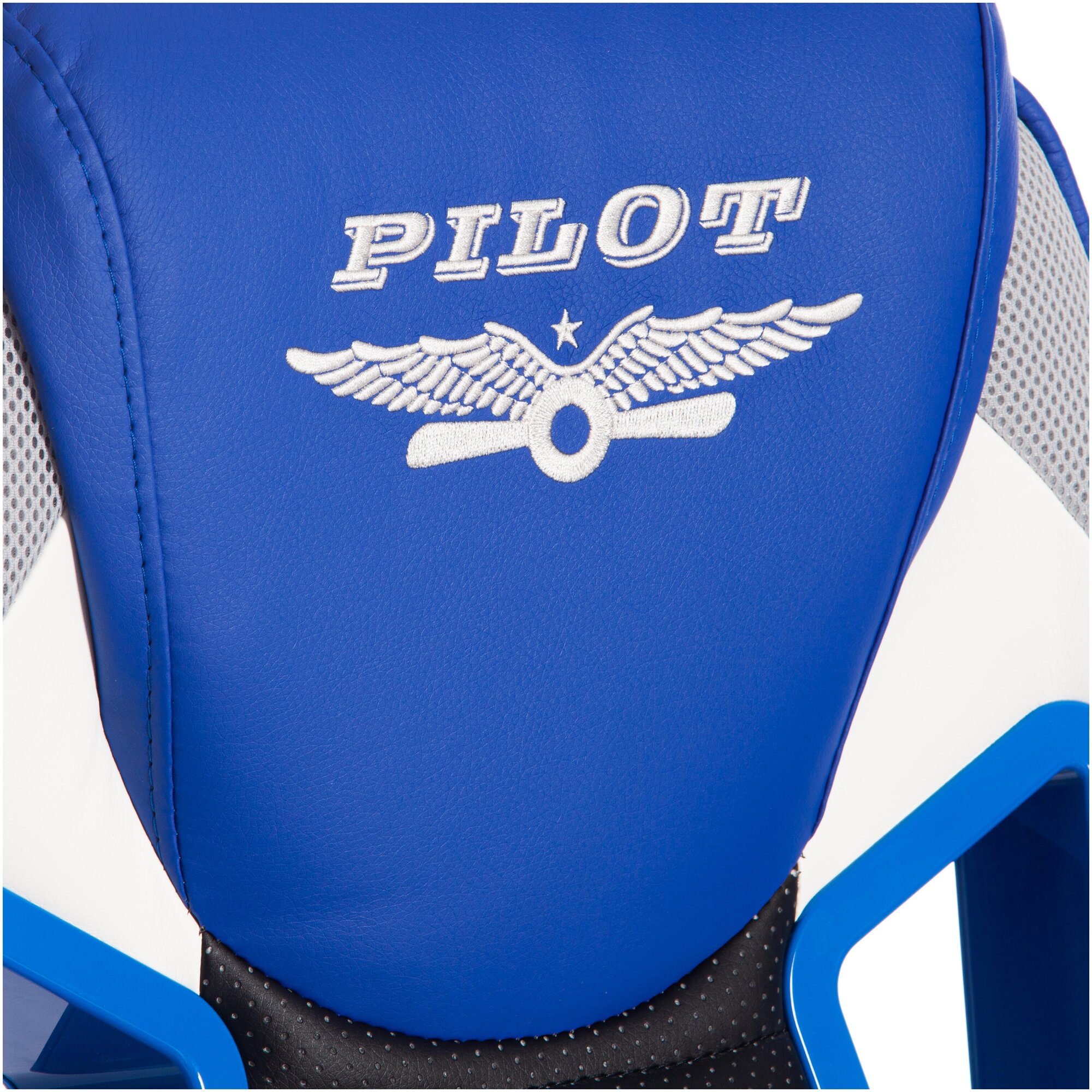 Офисное кресло TetChair PILOT кож/зам/ткань, черный перфорированный/св.серый/синий