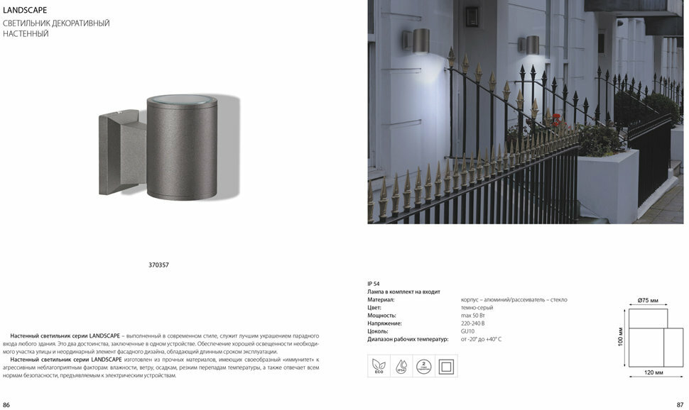 Ландшафтный настенный светильник Novotech LANDSCAPE 370406