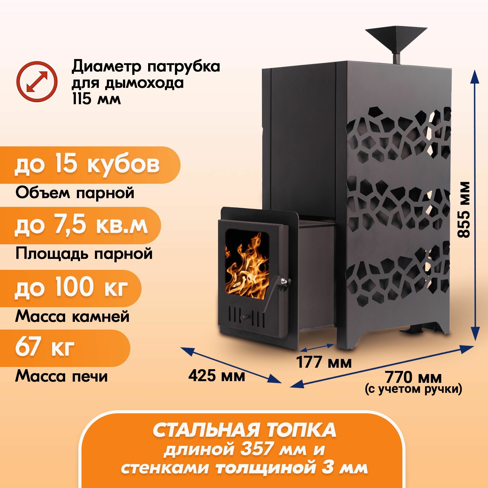 Печь для бани НМК Камчатка 15 (до 15 куб.м) (дрова)Марка стали Ст.3 СП 5
