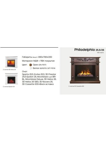 Электрокамин Philadelphia 26 WT 3D Cassette 630 + Black вставка