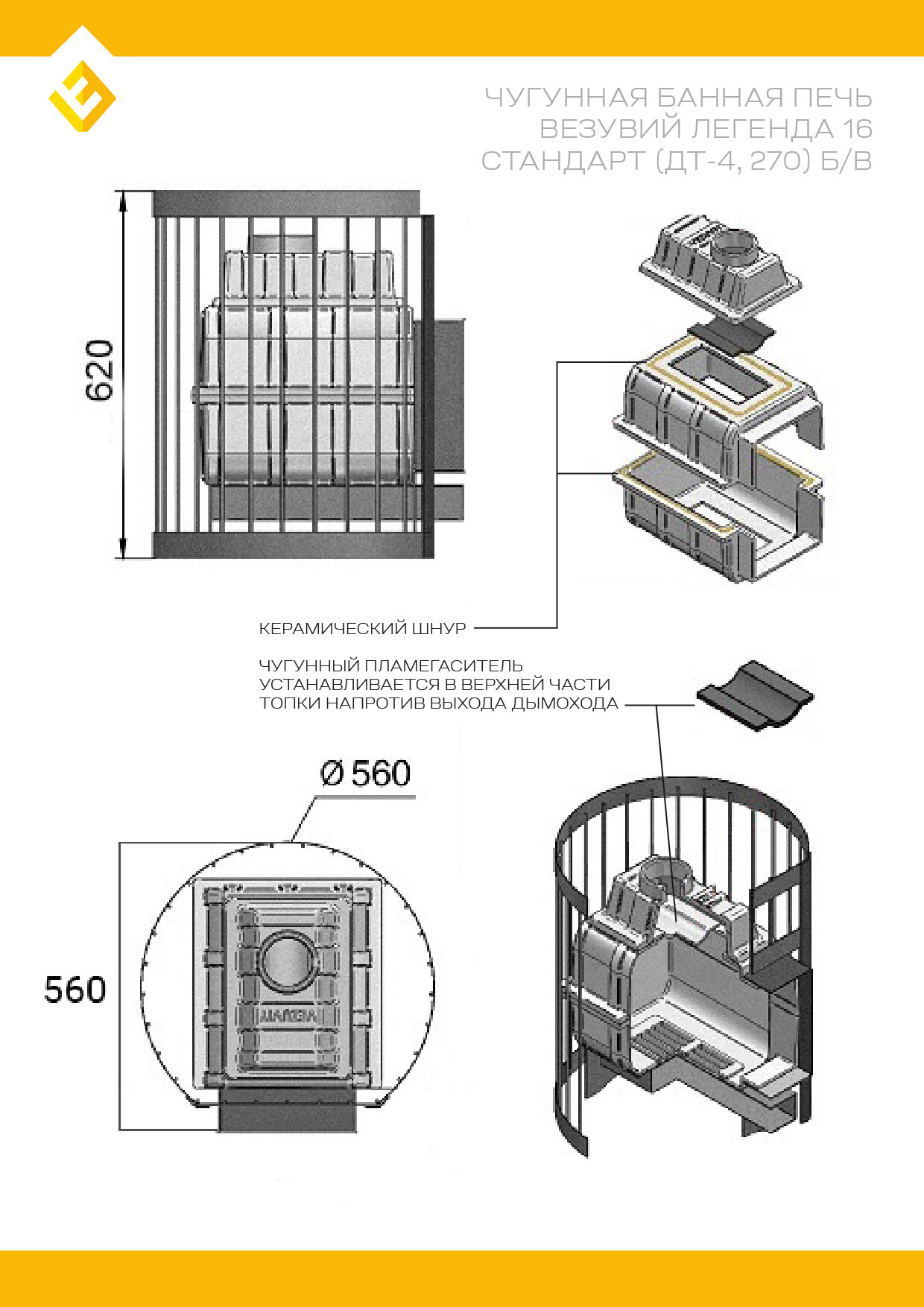 Купить Банная печь везувий Легенда Стандарт 16 (ДТ-4) без выноса