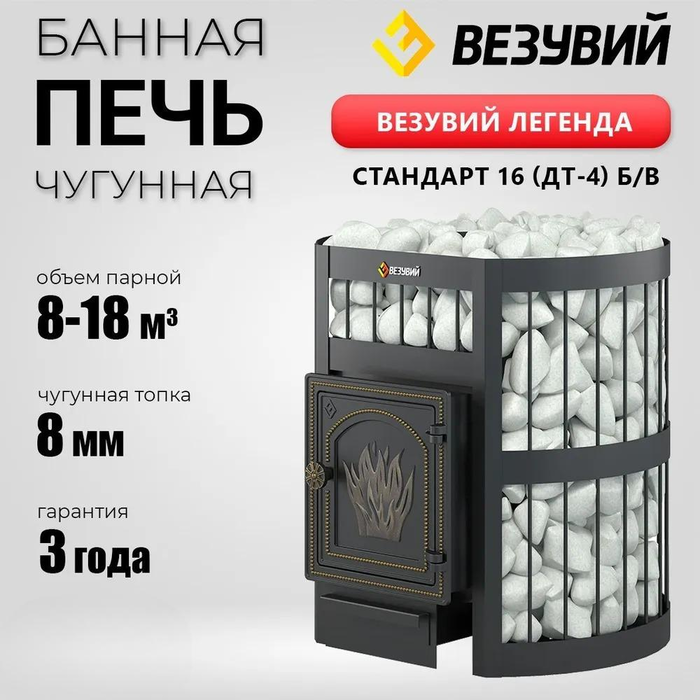 Везувий Чугунная печь для бани Везувий Легенда Стандарт 16 (Дверь: ДТ-4)(- -)