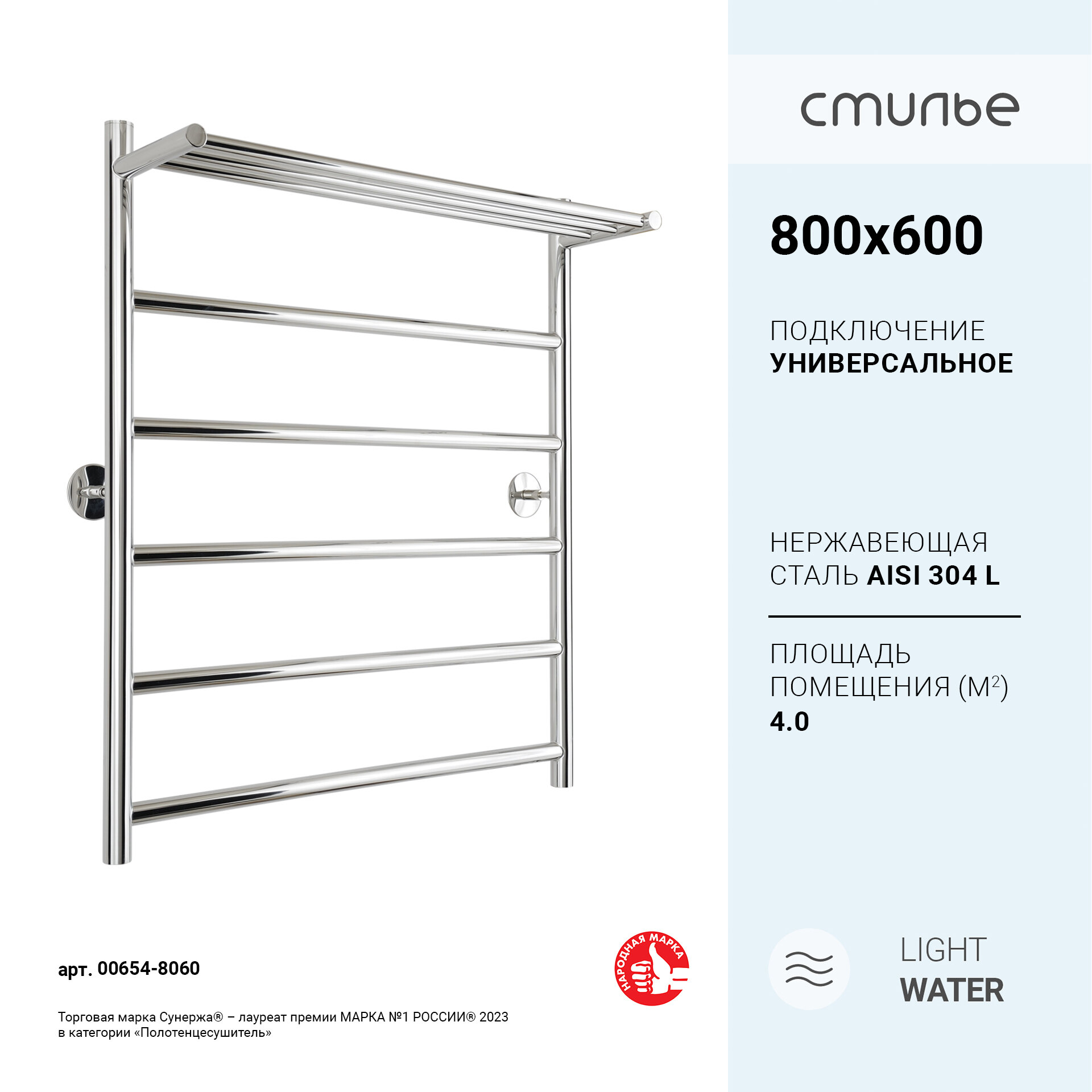 Полотенцесушитель водяной Стилье Универсал-54 800х600 (Полка+5) П 21 арт. 00654-8060