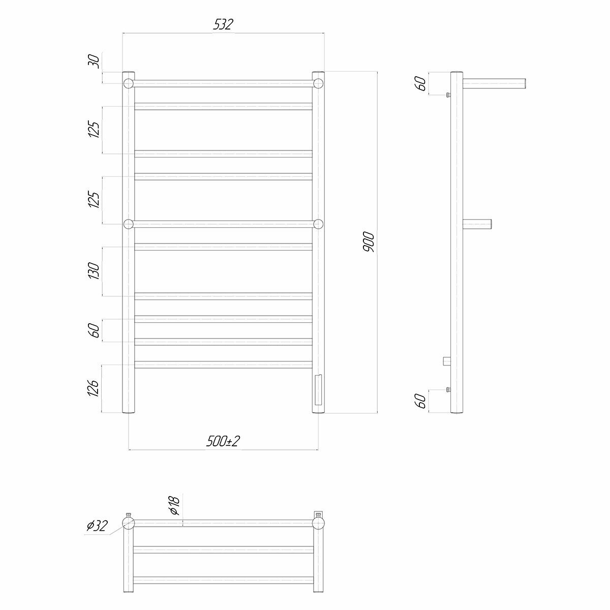Электрический полотенцесушитель Lemark Pramen П10 LM33910Z 500x900