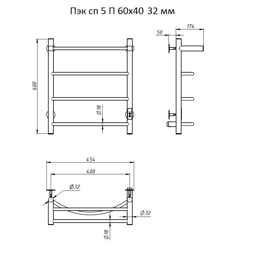 Полотенцесушитель Тругор Пэк сп 5 60x40 32 мм