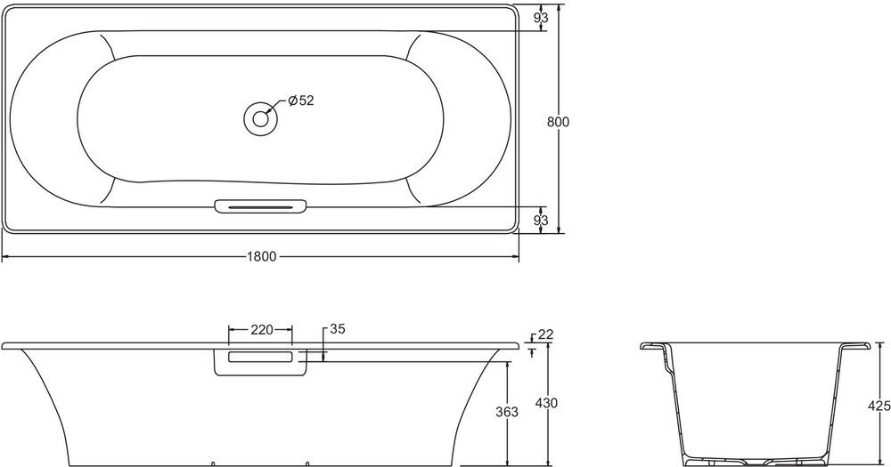 Чугунная ванна Jacob Delafon VOLUTE 1800x800 без отверстий для ручек E6D900-0
