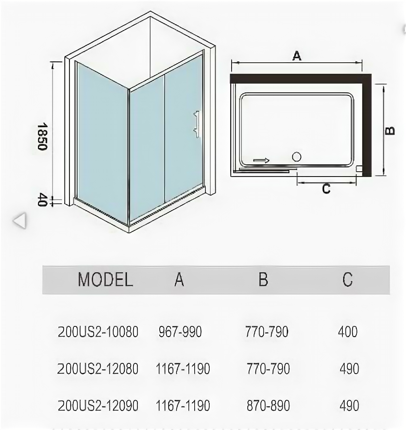 | Высота поддона | 185 cм |