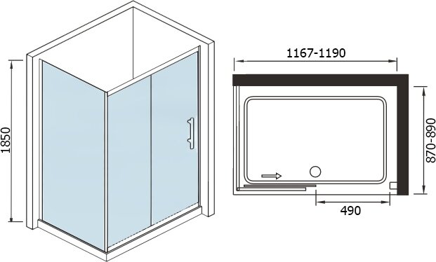 Душевое ограждение WeltWasser 185х120х90 WW200 200US22-12090 10000001233 без поддона