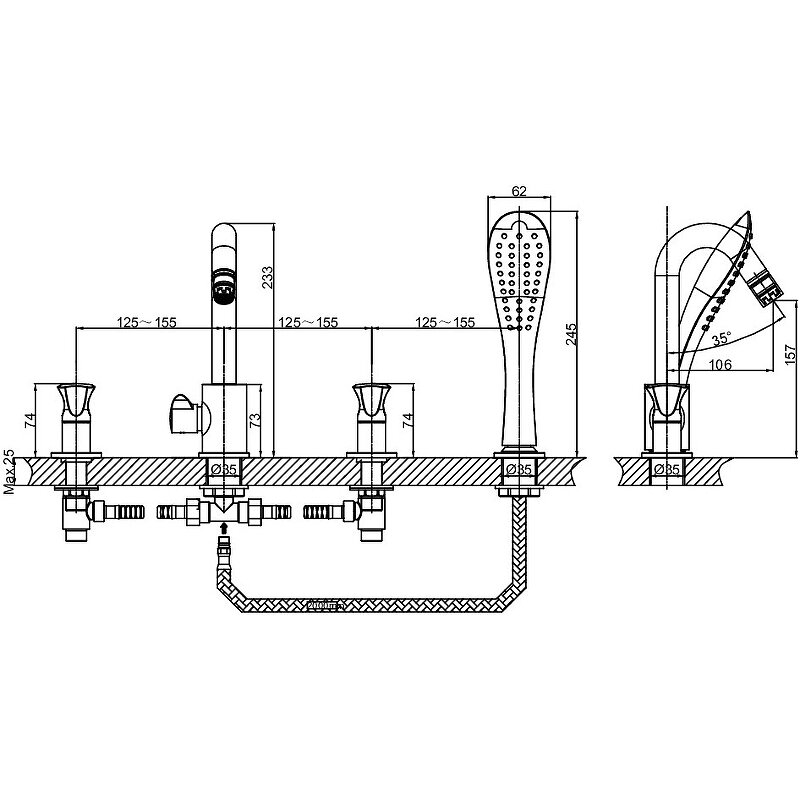 Смеситель на борт ванны DK HessenGrimm (DA1384901) с ручным душем