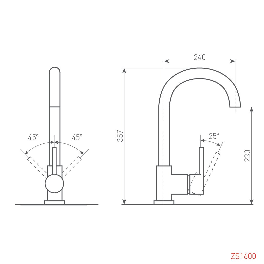 | Высота излива | 230 мм / 357 мм |