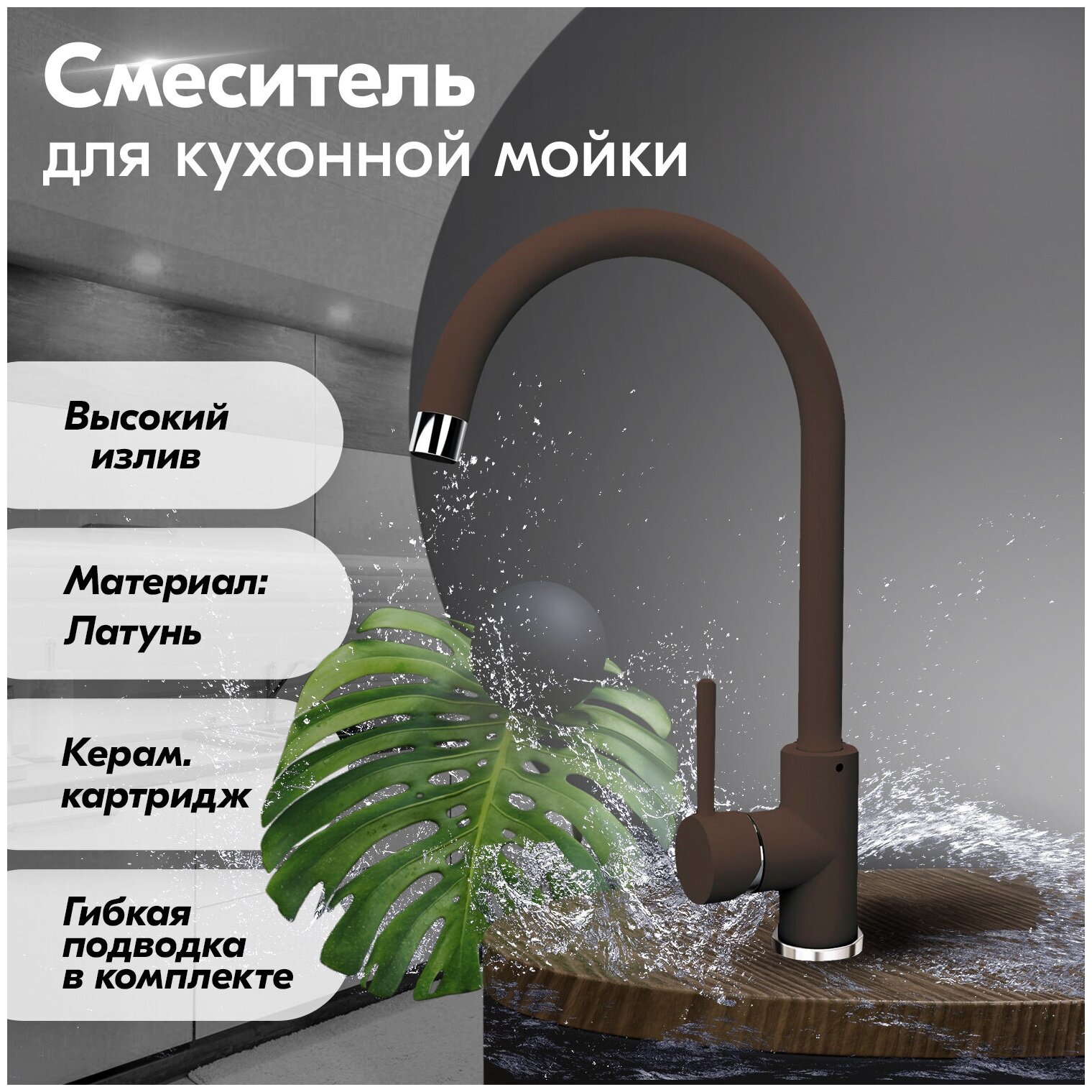 Смеситель для кухни / мойки Florentina альфа (ALFA FL), высокий излив, мокко