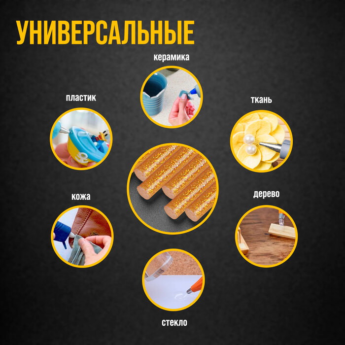 Клеевые стержни тундра, 7 х 100 мм, золотистые с блестками, 6 шт. интересное: