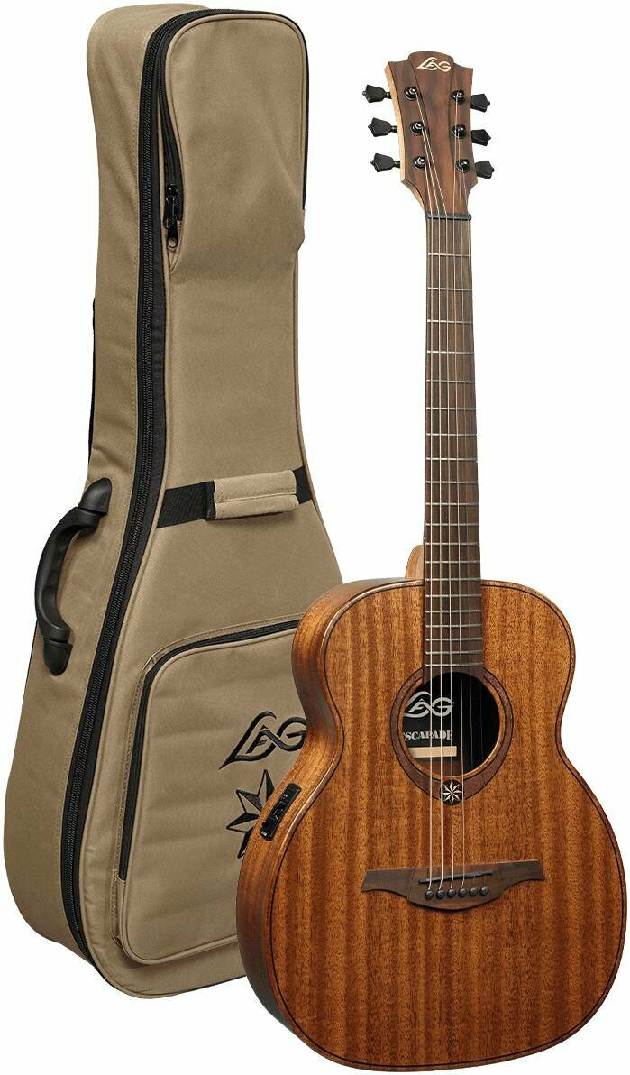 LAG TRAVEL-KAE электроакустическая тревел-гитара + чехол, цвет корич, кайя интересное: