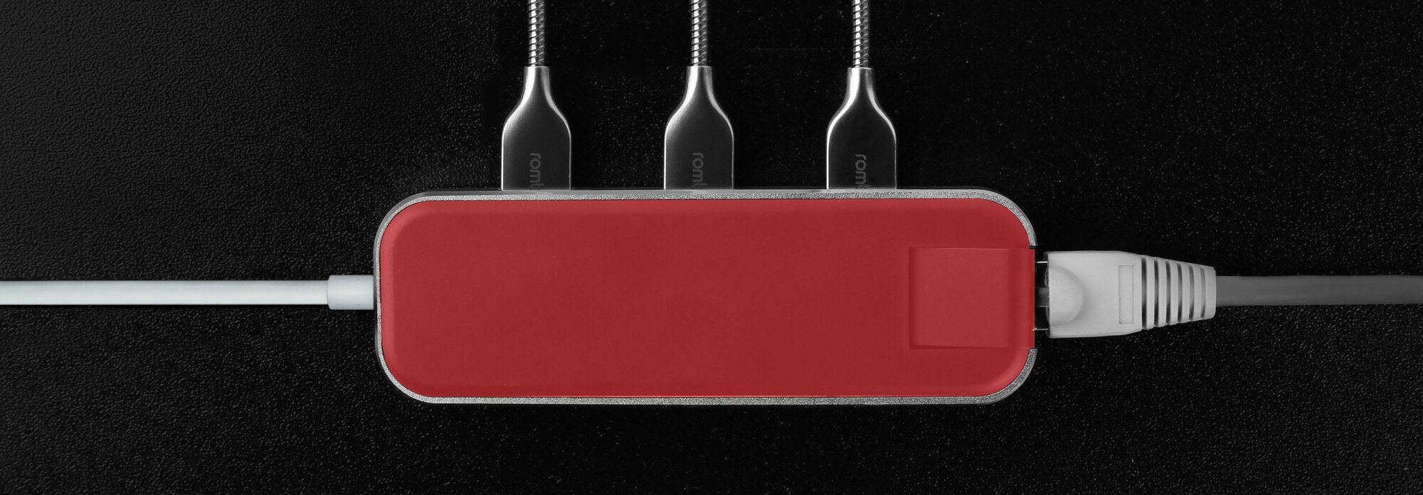 Концентратор Rombica Chronos Red TC-00250 Type-C - 3*USB 3.0 Type-A SuperSpeed, Ethernet (RJ45)