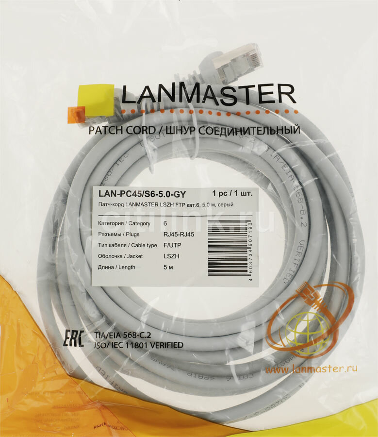 СохранитьПатч-корд Lanmaster Lszh FTP кат.6, 5.0 м, серый Lan-pc45/s6-5.0-gy интересное: