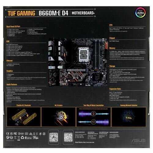 Материнская плата mATX ASUS TUF GAMING B660M-E D4 (LGA1700, B660, 4*DDR4(5333), 4*SATA 6G RAID, 2*M.2, 3*PCIE, 7.1CH, Glan, 4*USB 3.2, HDMI, DP) RTL