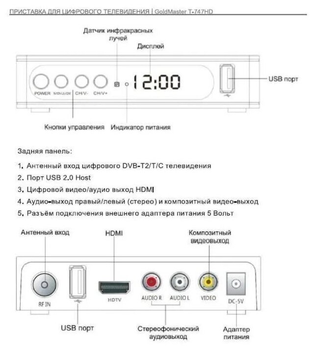 Комбинированный тюнер GoldMaster T-747HD HD (DVB-T2/DVB-C/IPTV/YouTube) интересное: