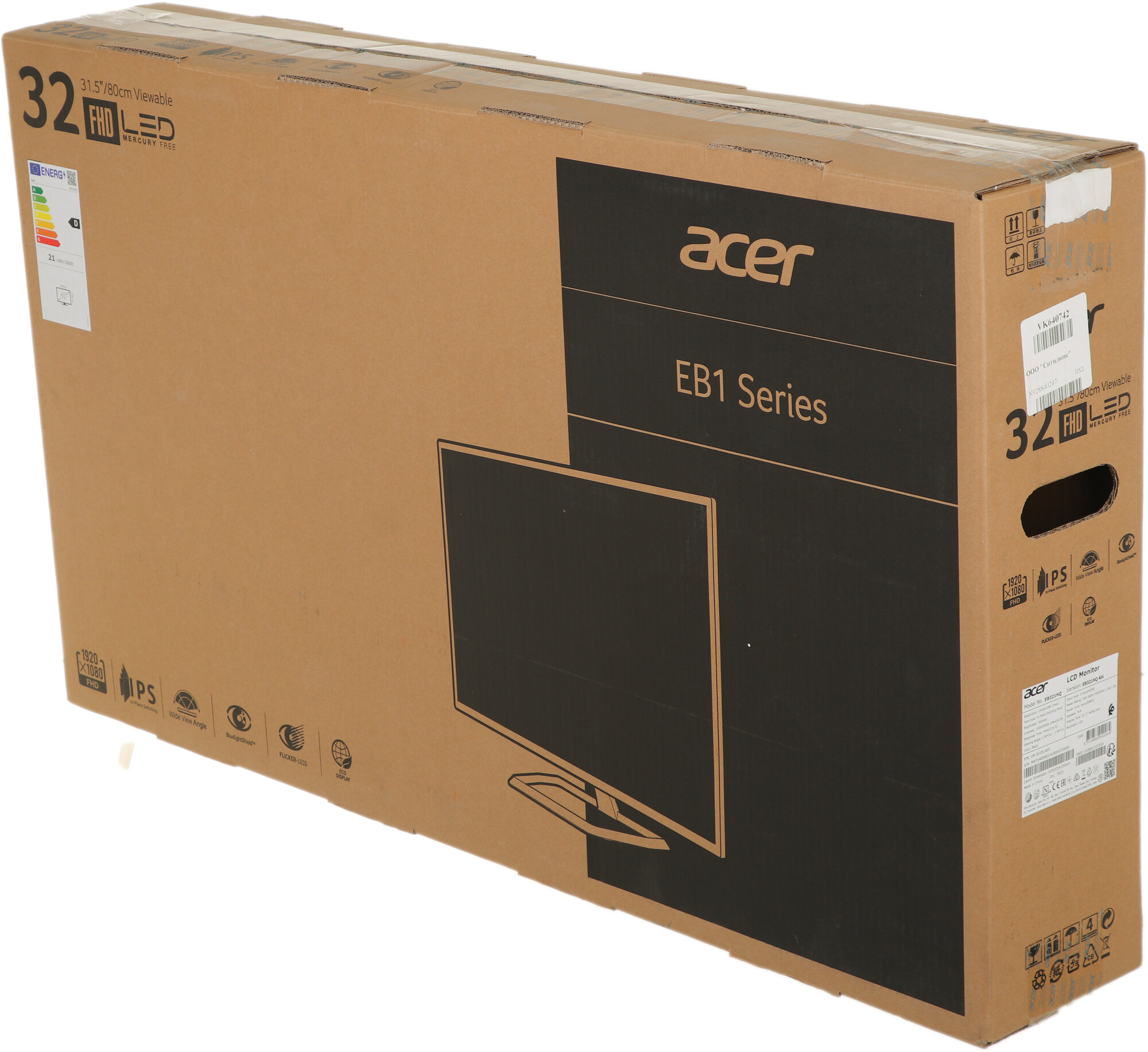 Монитор Acer EB321HQAbi, 31.5", Ips, 1920x1080, 60Гц, 4мс, D-Sub, Hdmi, чёрный Acer 9108200