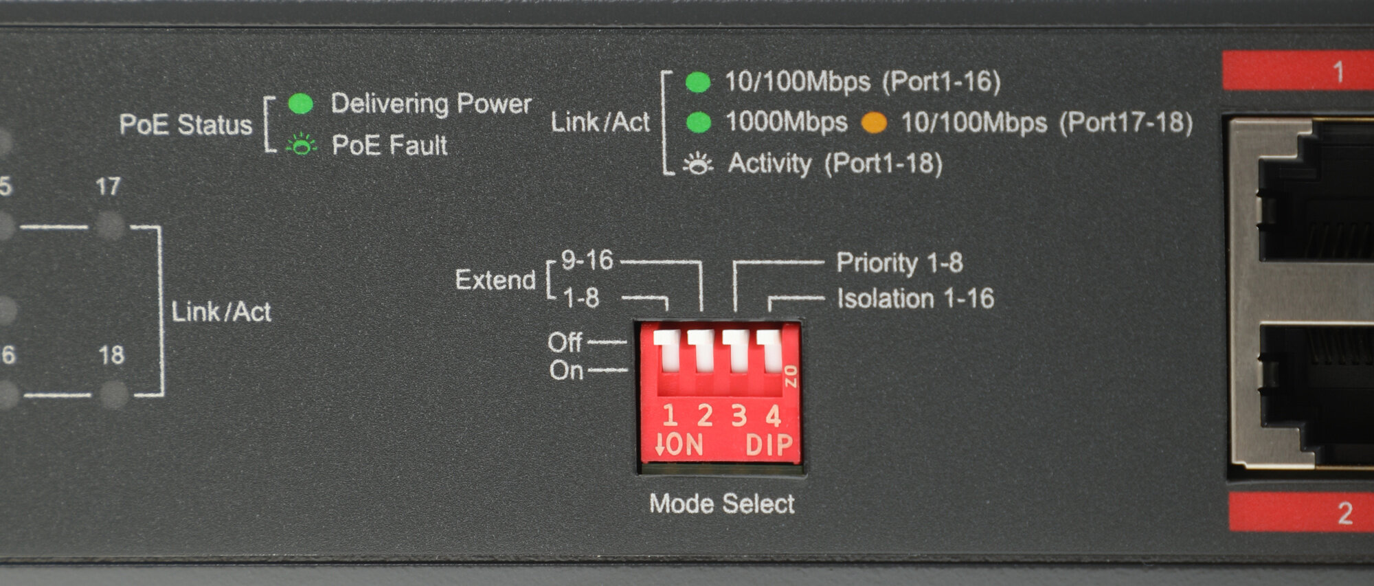 | Дополнительная информация | 2 порта RJ45 10/100/1000 Мбит/с; 16 портов PoE+ 10/100 Мбит/с, Plug and Play, дальность PoE для видеонаблюдения - до 250 м; возможность назначения высокого приоритета портам 1-8; режим изоляции для разделения трафика портов 1-16; 2 вентилятора |