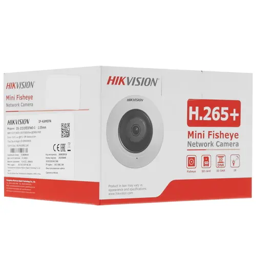 СохранитьВидеокамера IP HIKVISION DS-2CD2935FWD-I (1.16mm) 3Мп fisheye c EXIR-подсветкой до 8м, 1/2.8" Progressive Scan CMOS; fisheye объектив 1.16мм; угол обз интересное: