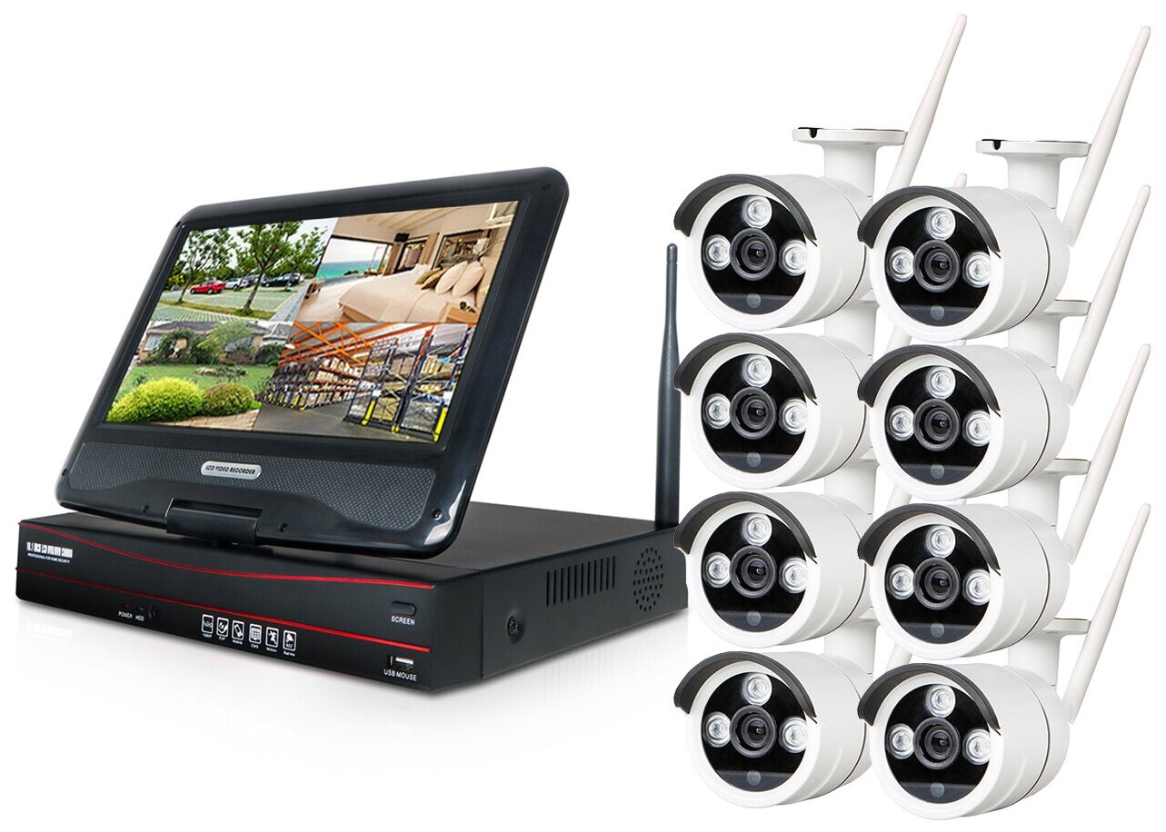 Okta Vision Optimus Street - 2.0R (Lux) - Беспроводной комплект для улицы с репитером на 8 камер с монитором 10, комплект ip видеонаблюдения на 8 каме