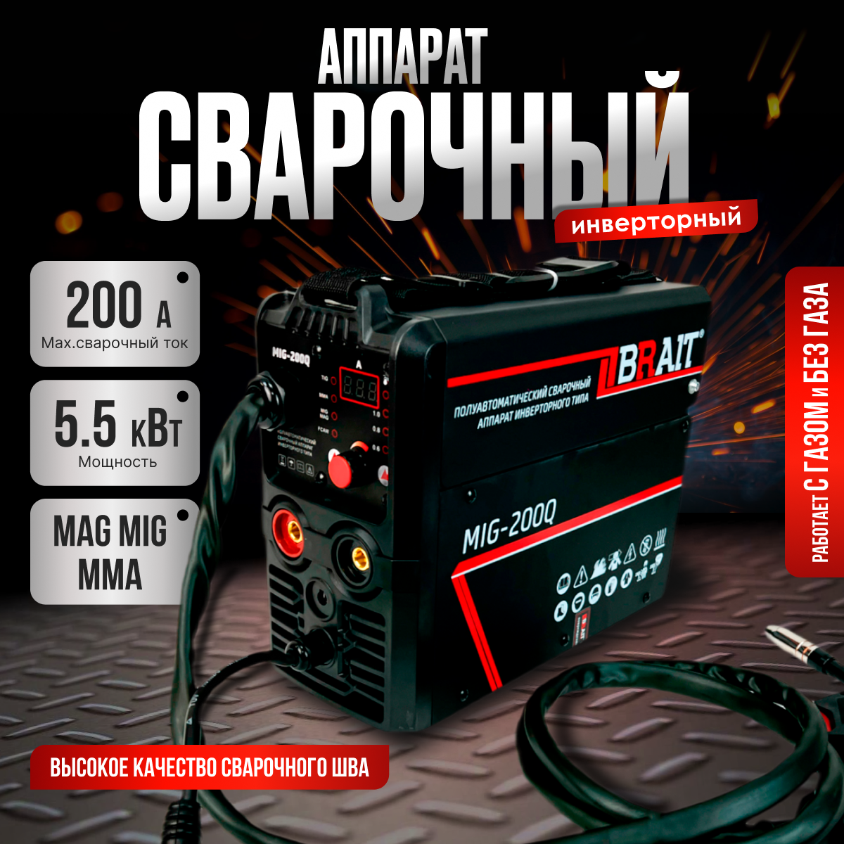 Сварочный инвертор полуавтомат BRAIT MIG-200Q подарок на день рождения мужчине, любимому, папе, дедушке, парню