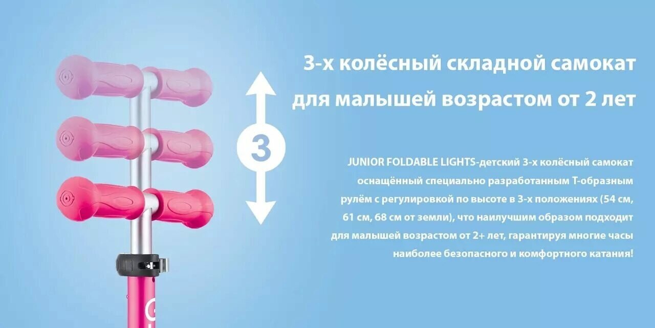 СохранитьТрёхколёсный самокат Globber Junior Foldable Lights - 2021 Pink интересное: