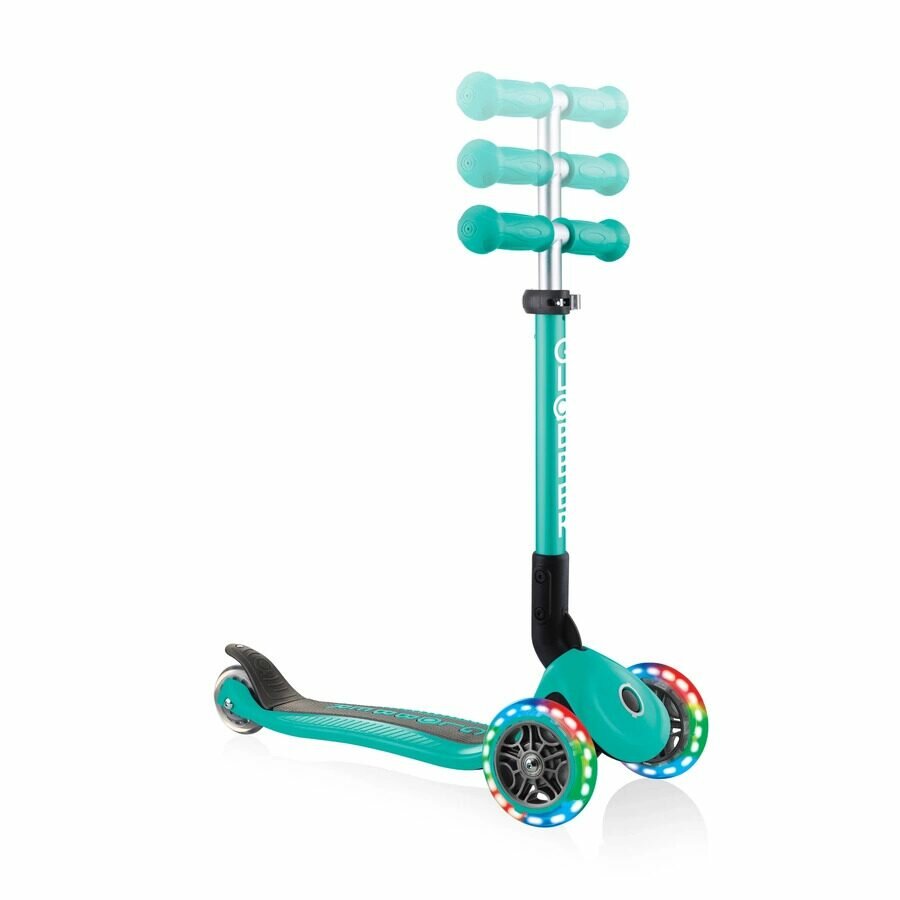 Трехколесный самокат Globber Junior Foldable Lights бирюзовый