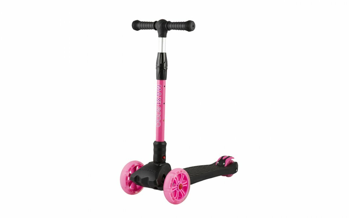 Maxiscoo Самокат Трехколесный Складной, со Светящимися Колесами, Черный с Розовым - MSC-J072001D