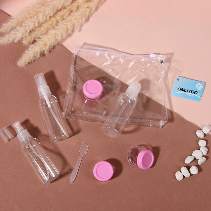 Купить ONLITOP Набор для хранения, в чехле, 7 предметов, цвет прозрачный/розовый