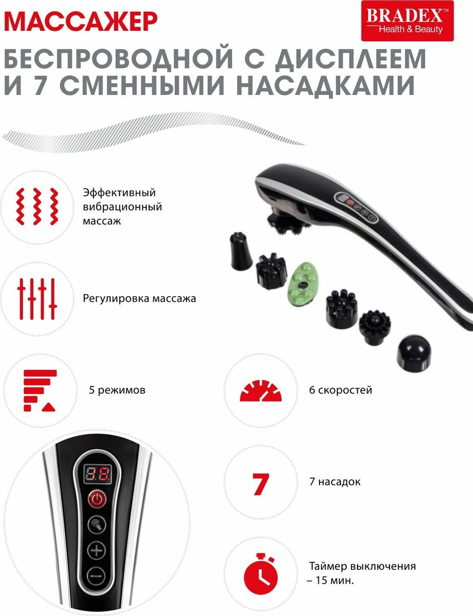 Массажер универсальный Bradex беспроводной с дисплеем и 7 сменными насадками KZ 0567