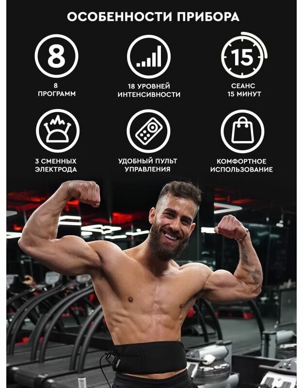 Пояс - миостимулятор для пресса PLANTA EMS-400, электрический массажер для мышц пресса интересное:
