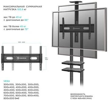 Стойка для двух телевизоров ONKRON TS1881DVB с кронштейном 40"-65", мобильная, чёрная интересное: