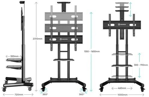 ONKRON TS1881DV чёрная,стойка для двух телевизоров с кронштейном 40"-65" мобильная