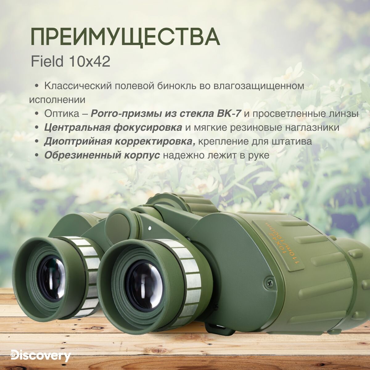 Ниже Вы можете прочитать отзывы на Бинокль Discovery Field 10x42, ознакомится с подробными характеристиками, посмотреть интересные обзоры и фотографии на Бинокль Discovery Field 10x42.