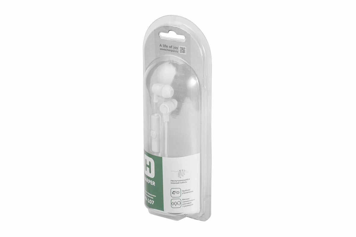 Гарнитура HARPER HV-107 white, наушники с микрофоном вкладыши кабель: 1.2 метра