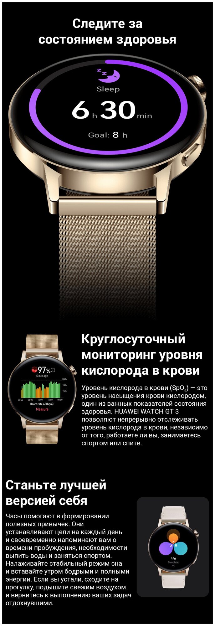 мне с моим тонким запястьем - идеально подходят, других таких по виду функционалу и времени работы на рынке не найти, все варианты либо сильно громоздкие, либо работают от силы 2 дня при одинаковом использовании (+ постоянное отслеживание кислорода в крови) живут на 1,5 дня дольше чем предыдущая модель (GT 2 - 5 дней, GT 3 - почти 7) разговор по ним в качестве гарнитуры вполне комфортный - меня хорошо слышат и я хорошо слышу - думал бесполезная функция, но в итоге частенько пользуюсь по поводу сна: в случае если звонит будильник - я его выключаю и отрубаюсь еще на пол часа и только потом встаю - частенько пишут что я встал по первому будильнику. GT 2 же регистрировали это как пробуждение во время сна и прям четко показывали во сколько я реально встал |