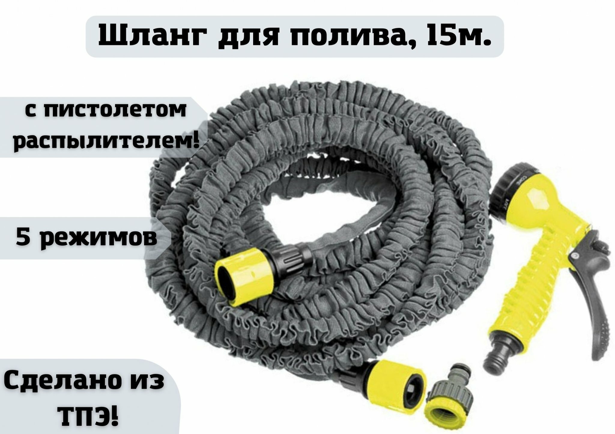 Шланг для полива ULMI (с пистолетом распылителем, 5 режимов + коннектор 1\2) 15м, ТПЭ интересное: