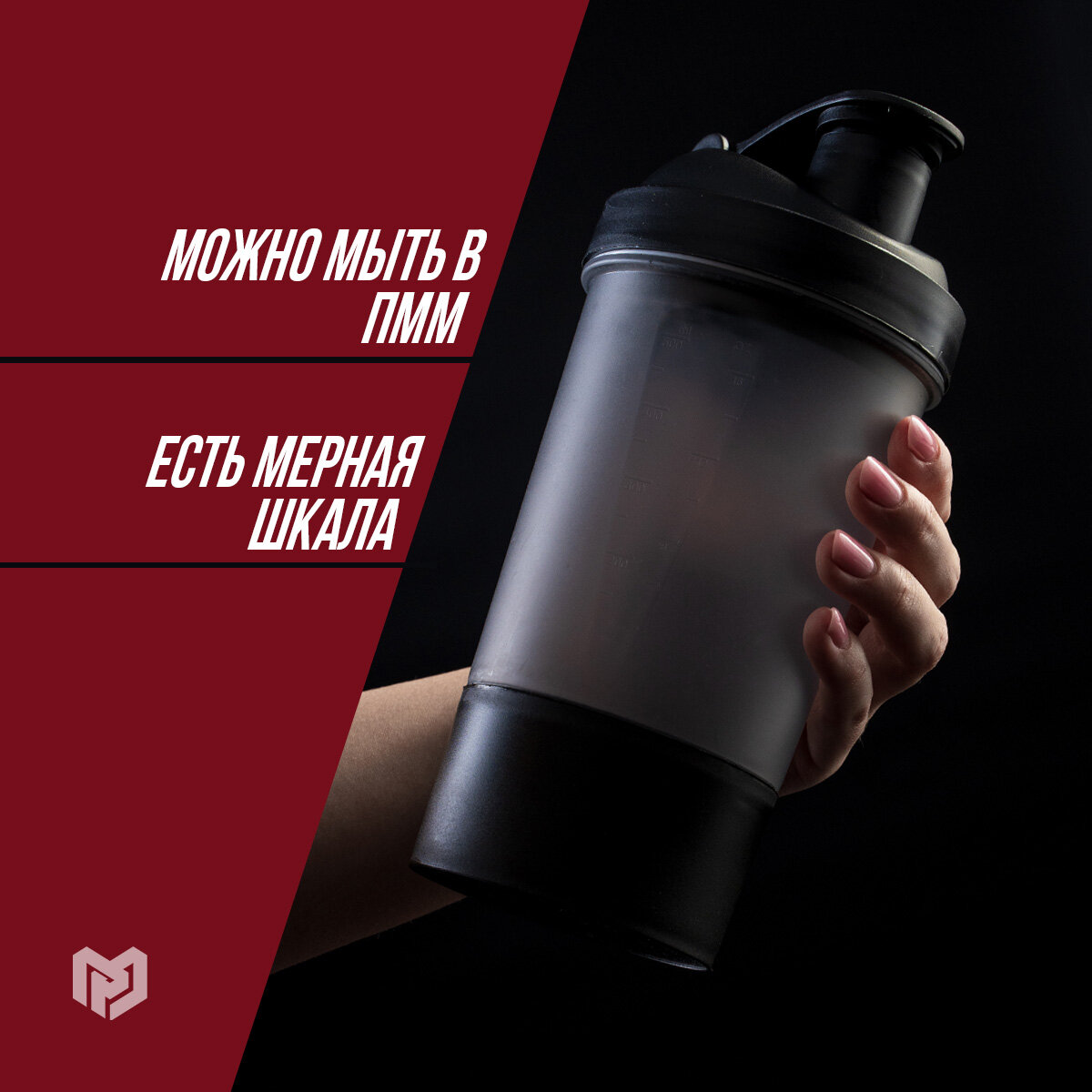 Шейкер спортивный с чашей под протеин, чёрный, 500 мл интересное: